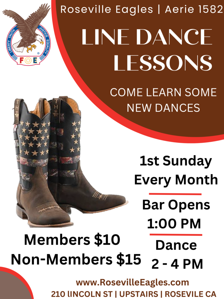 Come learn new dances. Come & meet new friends. Both men and women are welcome to join in. Members and non-members of the Eagles are welcome.